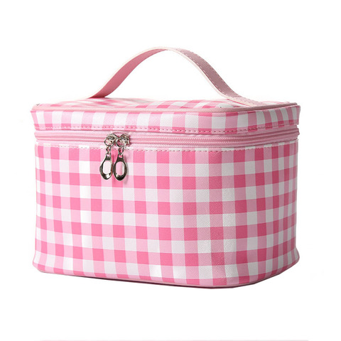 旅行メイクアップオーガナイザーPUグリッドバケットバッグ女性用化粧バッグトイレタリーバッグ