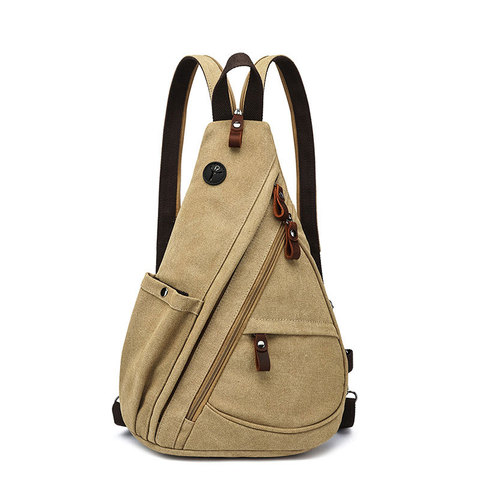 レトロスリングメッセンジャーバッグビンテージ胸パックカジュアル安い男性無地韓国キャンバス胸バッグ