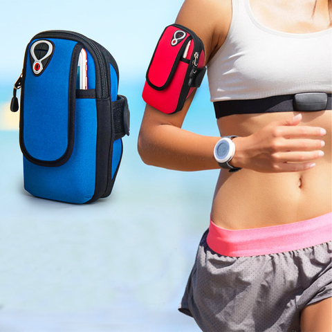 Outdoor Fietsen Mobiele Telefoon Dragen Dubbele Zakken Neopreen Hardlooparmband Gym Oefenarmband Voor Unisex